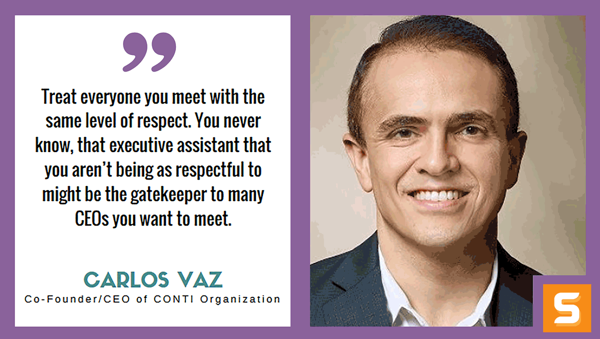 - Treat everyone you meet with the same level of respect. You’ll never know, maybe that executive assistant you aren’t being as respectful to is the gatekeeper to many CEOs you want to meet.