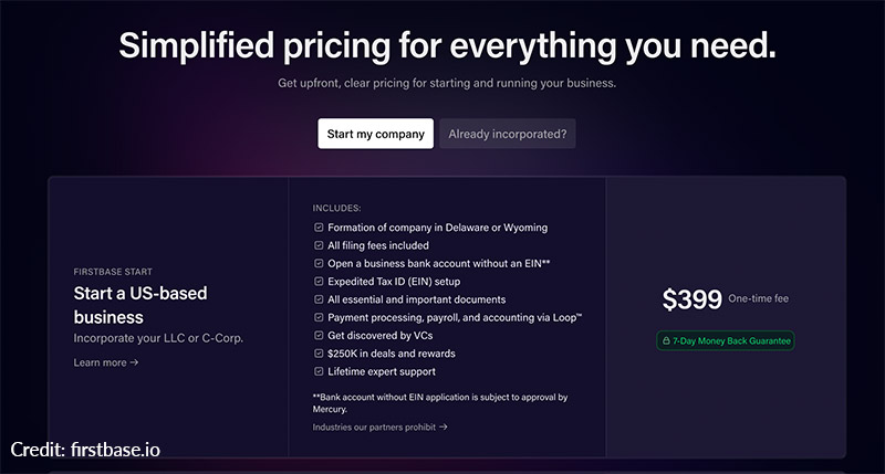 No, Firstbase.io isn’t free. They charge for their services, with the pricing dependent on the specific package and features chosen. However, they do offer a seven-day money-back guarantee on certain packages.