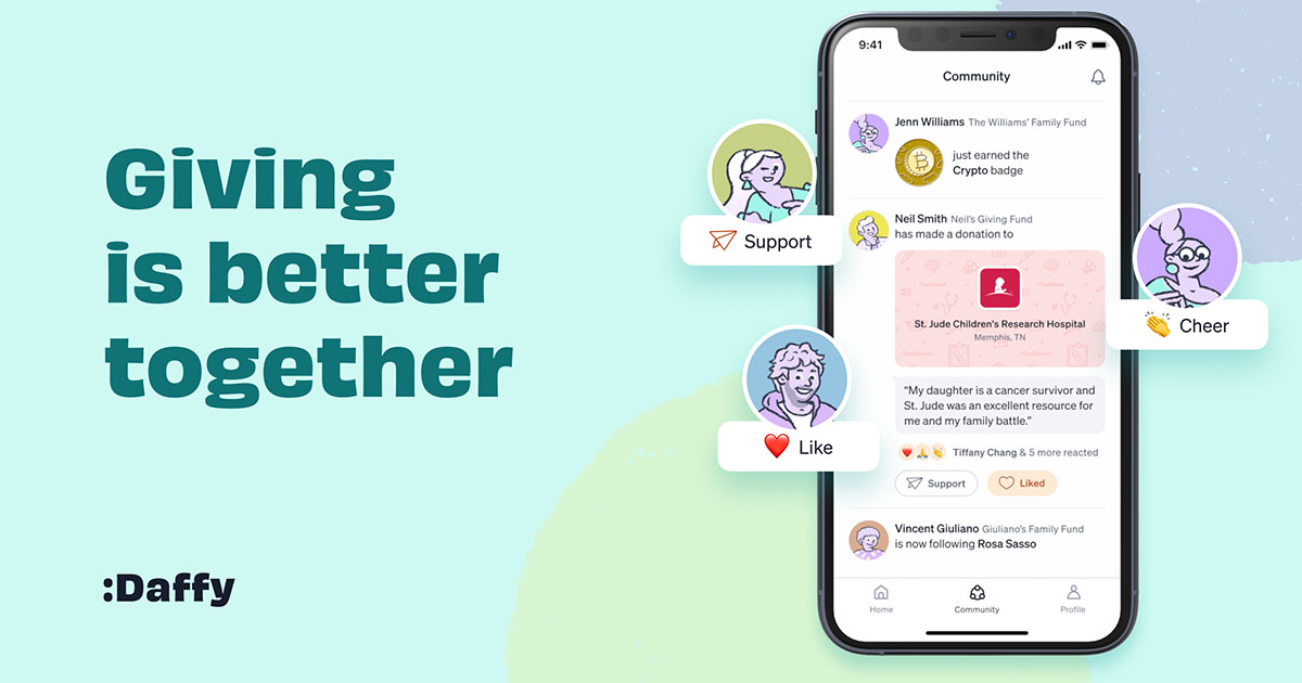“Today, we have thousands of generous members, and they are charity-minded and tech-savvy Millennials, Gen X, and Baby Boomers who give frequently, and just like they have an app for saving or investing, they love how Daffy can be their one place for all their giving. Daffy makes it easy to give a variety of assets, and because of that, we see a diverse membership base that contributes and donates in different ways: cash (ACH, debit/credit card), stock/ETFs, crypto, existing DAF transfers. It’s still early days at Daffy (we just hit one year), so we hope to grow the community from thousands to millions, so if you are one of the 60-70 million Americans who donate to charity every year, we believe Daffy can help you be more generous.”