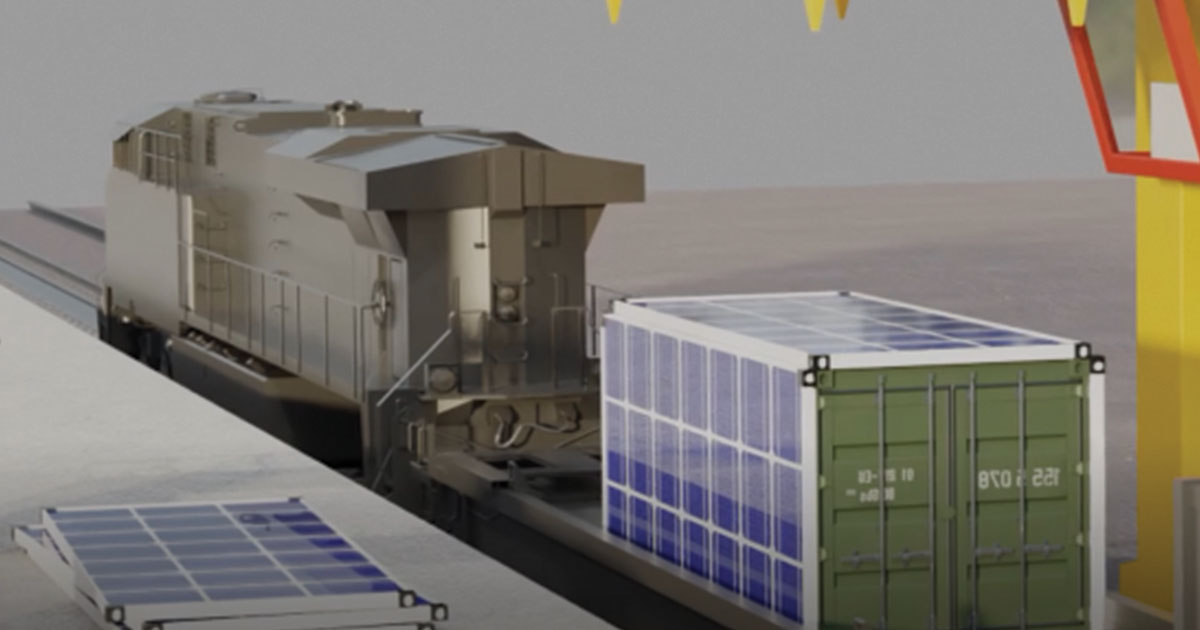 “The SBU System is designed to attach solar panel arrays to freight rail cars and tractor trailers to divide the electric loads of locomotives and power EV trucks.”