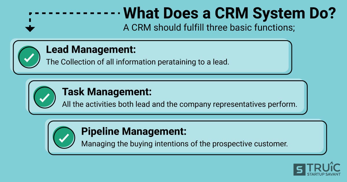 The last, but definitely not least, important function a CRM needs to accomplish is aiding with pipeline management. What is pipeline management? This is the movement of prospects through the sales funnel, from an interested party to a purchasing consumer.